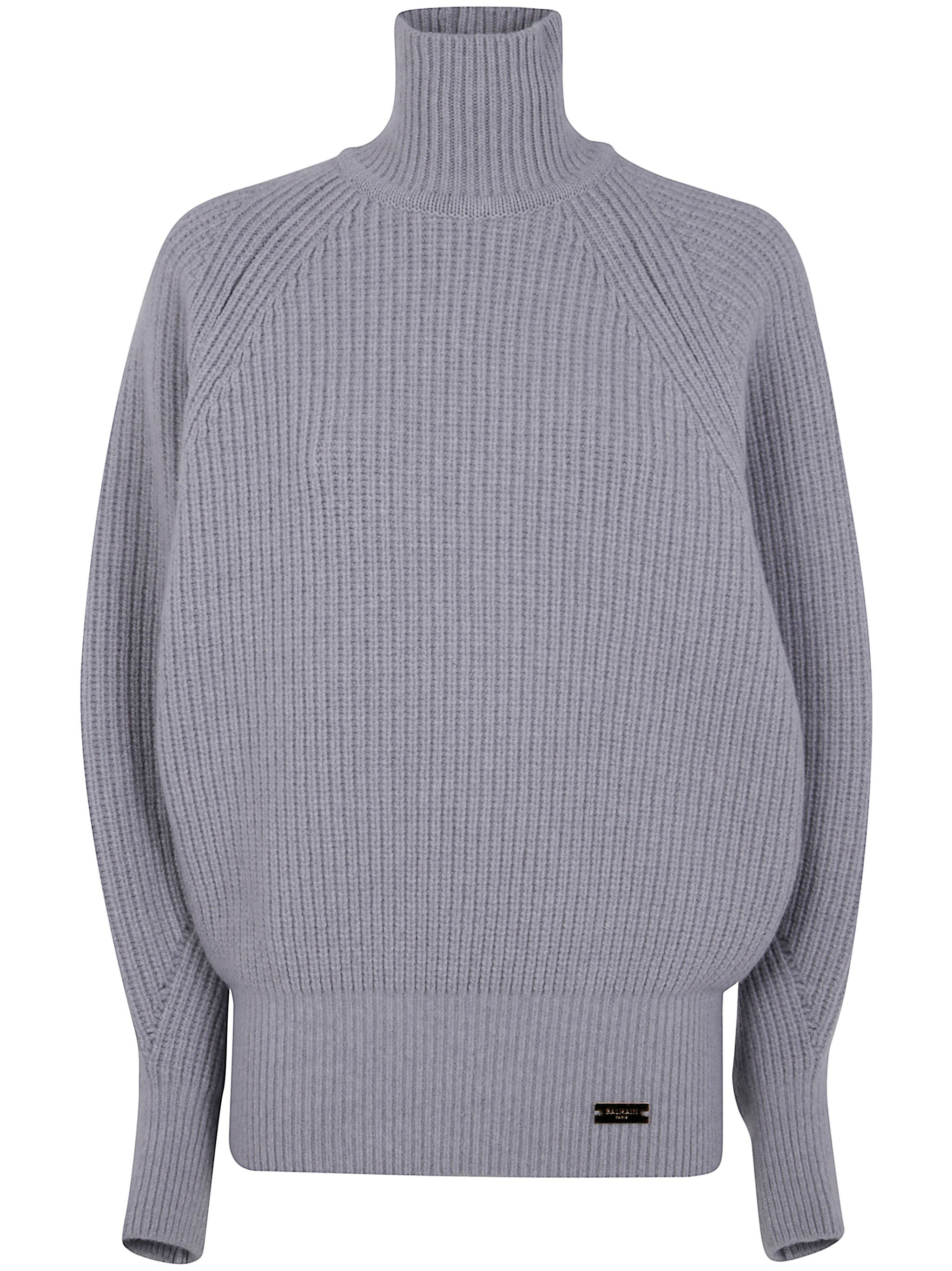 Introducing the 'BATWING RIBBED KNIT PULL' from BALMAIN, a statement sweater that embodies sophistication and modernity. Crafted from 100% virgin wool, this elegant piece in a versatile gray hue is made in France, ensuring top-notch quality. With its batwing design and ribbed texture, it offers both comfort and style. Perfect for layering over tailored trousers or a chic skirt, this sweater is ideal for upscale events or a night out. Elevate your wardrobe with this luxurious essential that showcases the artistry of French craftsmanship. Product code: FF0KG025KJ22 9UB INK GREY