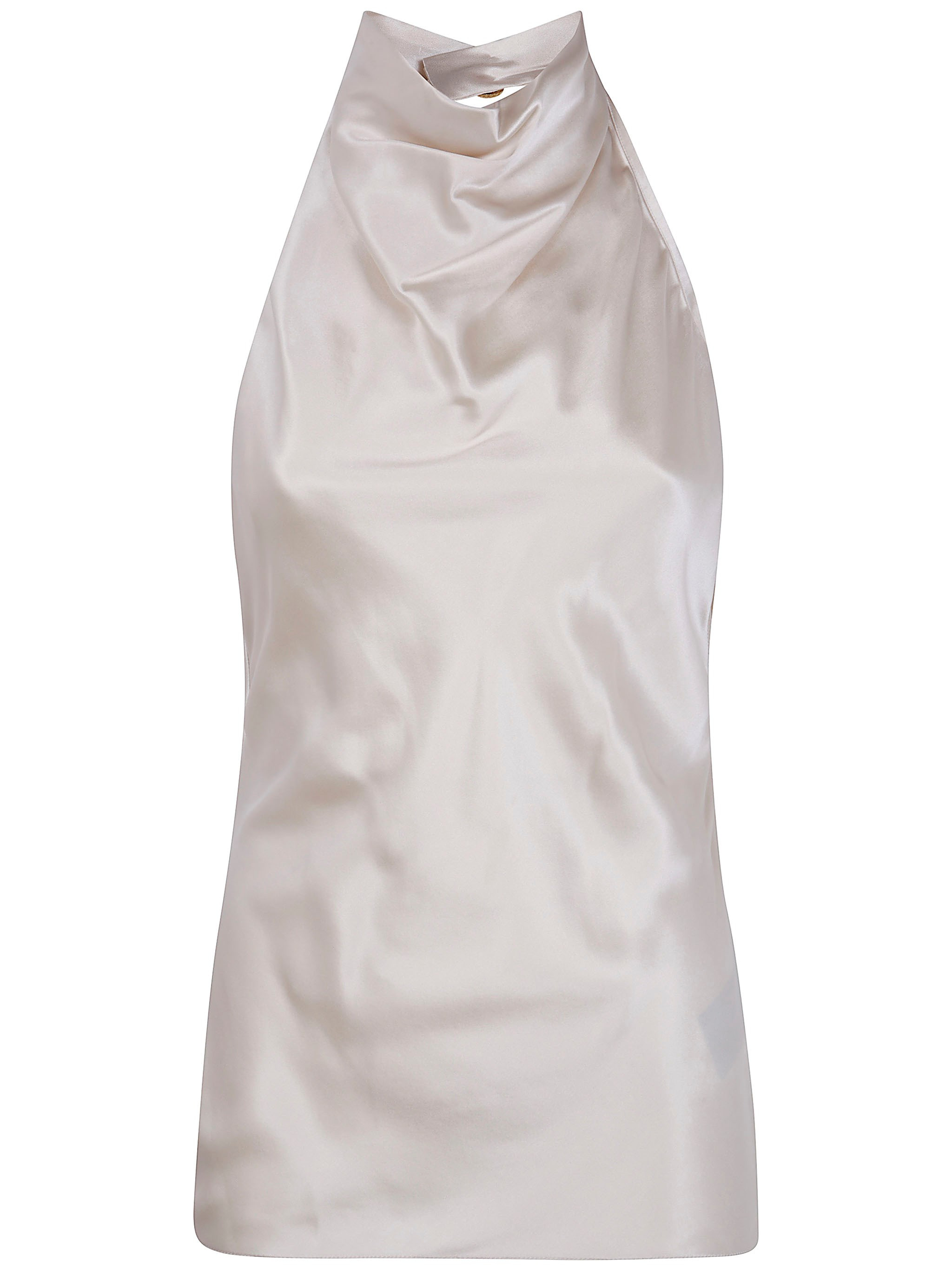 The Halterneck Crepe Satin Top by Balmain is a stunning addition to any wardrobe. Crafted from luxurious crepe satin, this top features a sophisticated beige hue that perfectly complements its elegant design. Made in Portugal, it offers a flattering silhouette with a modern halterneck cut. Ideal for evening events or upscale gatherings, pair it with tailored trousers or a sleek skirt for a chic look. This exclusive piece showcases an exceptional attention to detail, ensuring you stand out with confidence and style. Product code: FF1AE165SE95 0AS BEIGE