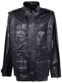 multiple-pocket leather jacket
