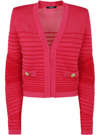The Lon Sleeves Side To Side Flechage Knit Cardigan by Balmain is a luxurious addition to your wardrobe. Crafted from high-quality materials, this pink cardigan showcases a unique design with intricate details. Made in France, it embodies elegance and sophistication. Ideal for various occasions, from casual outings to upscale events, this versatile piece can be styled effortlessly. Embrace its exceptional craftsmanship and enjoy the comfort and style it brings to your look, making you feel valued and unique. Product code: EF0SK257KI38 OKO FUXIA RED