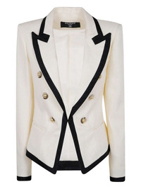 The One Button Fitted Natte Jacket by Balmain embodies sophistication in outerwear. Crafted from high-quality materials, this Beige jacket is made in France and features a tailored silhouette that flatters all body types. Its unique design includes a single-button closure and exquisite detailing, making it a standout piece. Ideal for both formal events and casual outings, it pairs beautifully with tailored trousers or a chic dress. Experience the luxury of premium craftsmanship with this exclusive garment, designed to elevate your style in any setting. Product code: FF1SE165VI29 GWO ECRU BLACK