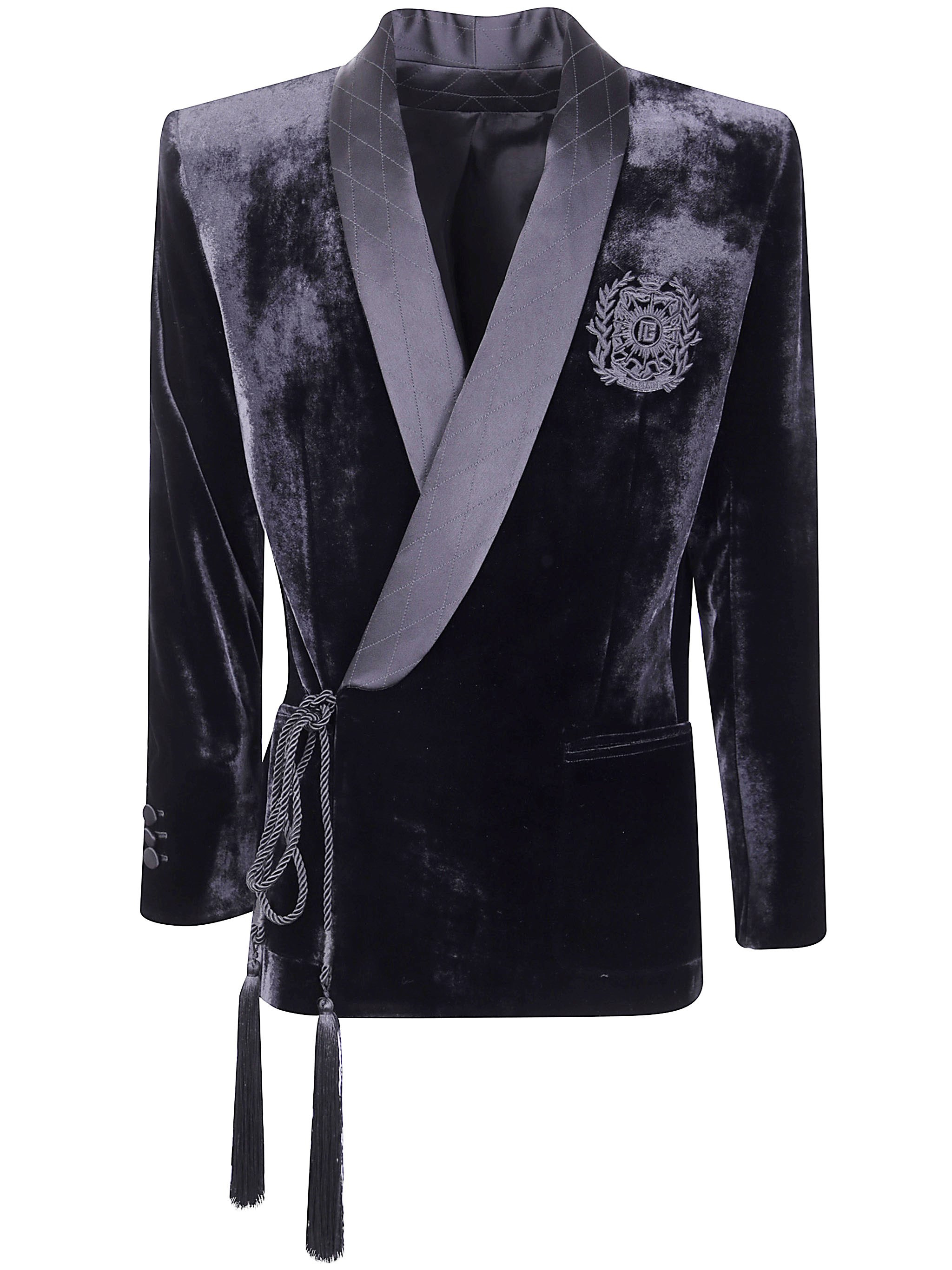 Introducing the 'VELVET & SATIN SIDE BELTED JACKET WITH TASSEL' from the iconic brand BALMAIN, a statement piece in the realm of jackets. Crafted from luxurious velvet and satin, this exquisite black jacket is designed in France, exemplifying artisanal elegance. Its unique side belt adds a tailored silhouette, while the tassel detail offers a playful touch. Perfect for sophisticated evenings or upscale events, this jacket elevates any outfit with its refined charm. Made in France, it embodies sustainable luxury and exclusivity, making it a coveted addition to any discerning wardrobe. Product code: FH1SI845MH52 EAP BLACK BLACK
