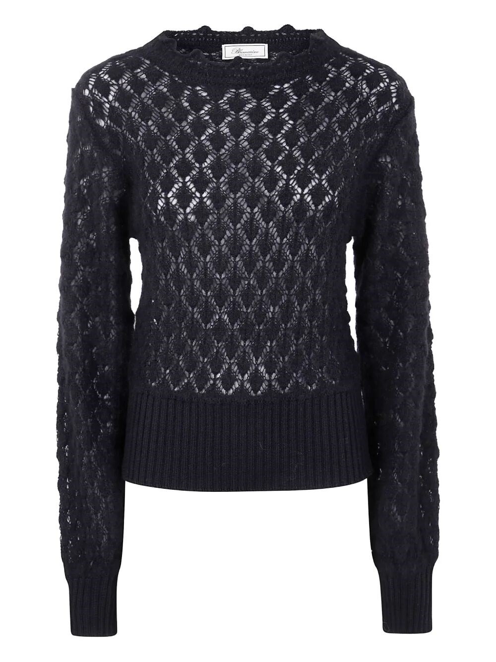 The Crew Neck Knit, a luxurious sweater by Blumarine, embodies elegance and sophistication. Crafted from high-quality materials, this exquisite piece is presented in a timeless black hue. Made in Italy, it offers a perfect fit for various body types. Ideal for layering, this knit is perfect for both casual outings and formal events, making it a versatile addition to your wardrobe. Its unique design features a classic crew neck and refined detailing, ensuring a polished look. Embrace the fusion of comfort and style, elevating your everyday ensemble with this exclusive garment. Product code: A522M639A N0990 BLACK
