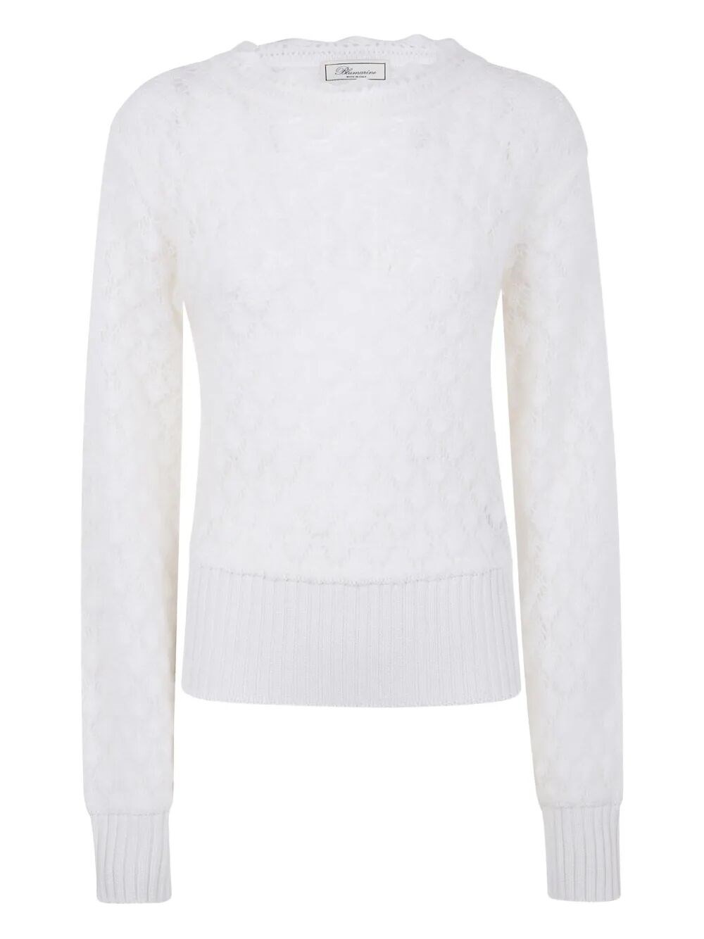 Introducing the Crew Neck Knit, a luxurious sweater by Blumarine. Crafted from high-quality materials, this elegant piece features a pristine white color that exudes sophistication. Made in Italy, it ensures superior craftsmanship and attention to detail. The soft fabric provides warmth and comfort, perfect for layering or wearing alone. Ideal for both casual outings and formal events, this versatile knit can be paired with tailored trousers or a chic skirt for a refined look. Elevate your wardrobe with this timeless addition that embodies style and exclusivity. Product code: A522M639A N0102 WHITE PEARL