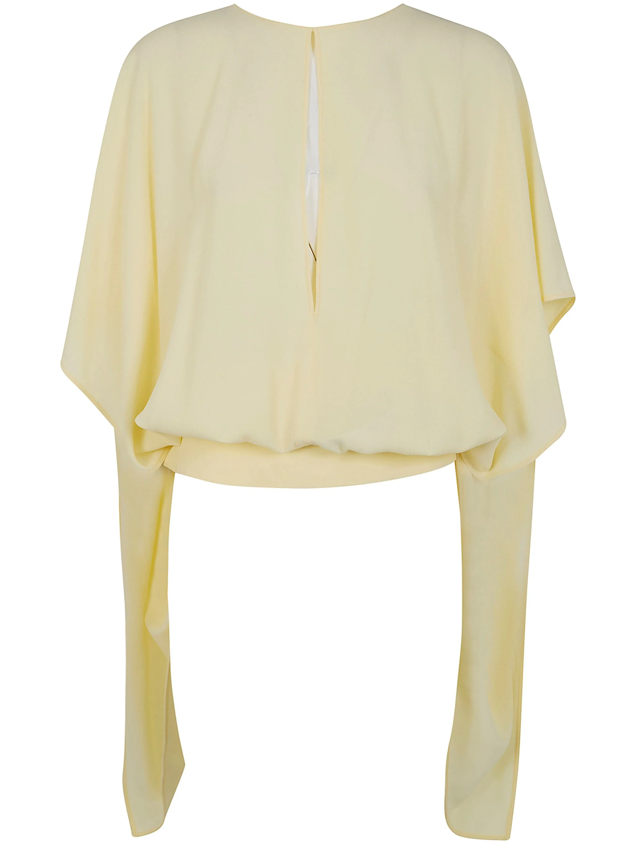 Introducing the MAROCAINE TOP, a stunning clothing piece by BLUMARINE. Crafted from 100% viscose, this elegant yellow top embodies luxury and sophistication. Made in Italy, it showcases exquisite craftsmanship and attention to detail. The soft, breathable fabric ensures comfort while accentuating your silhouette. Ideal for both daytime outings and evening gatherings, this versatile top can be paired with tailored trousers or a chic skirt. Embrace the essence of style and individuality, knowing that each piece reflects a commitment to quality and sustainability, making it a timeless addition to your wardrobe.. MadeIn: Italy IT Product code: P622C449A N0218 VANILLA