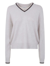 The Cashmere V Neck Sweater by Brunello Cucinelli is a luxurious addition to any wardrobe. Crafted from 100% soft cashmere, this beige sweater offers unparalleled comfort and warmth. Made in Italy, it embodies artisanal quality and attention to detail. Ideal for layering or wearing on its own, it complements both casual and sophisticated looks. Perfect for chilly evenings or cozy gatherings, it elevates your style effortlessly. The unique V-neck design adds a touch of elegance, making it a versatile piece for various occasions. Embrace the essence of luxury with this timeless staple. Product code: M12527202 CEN69 BEIGE ICE