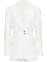 Viscose and linen fluid twill blazer with belt and monili