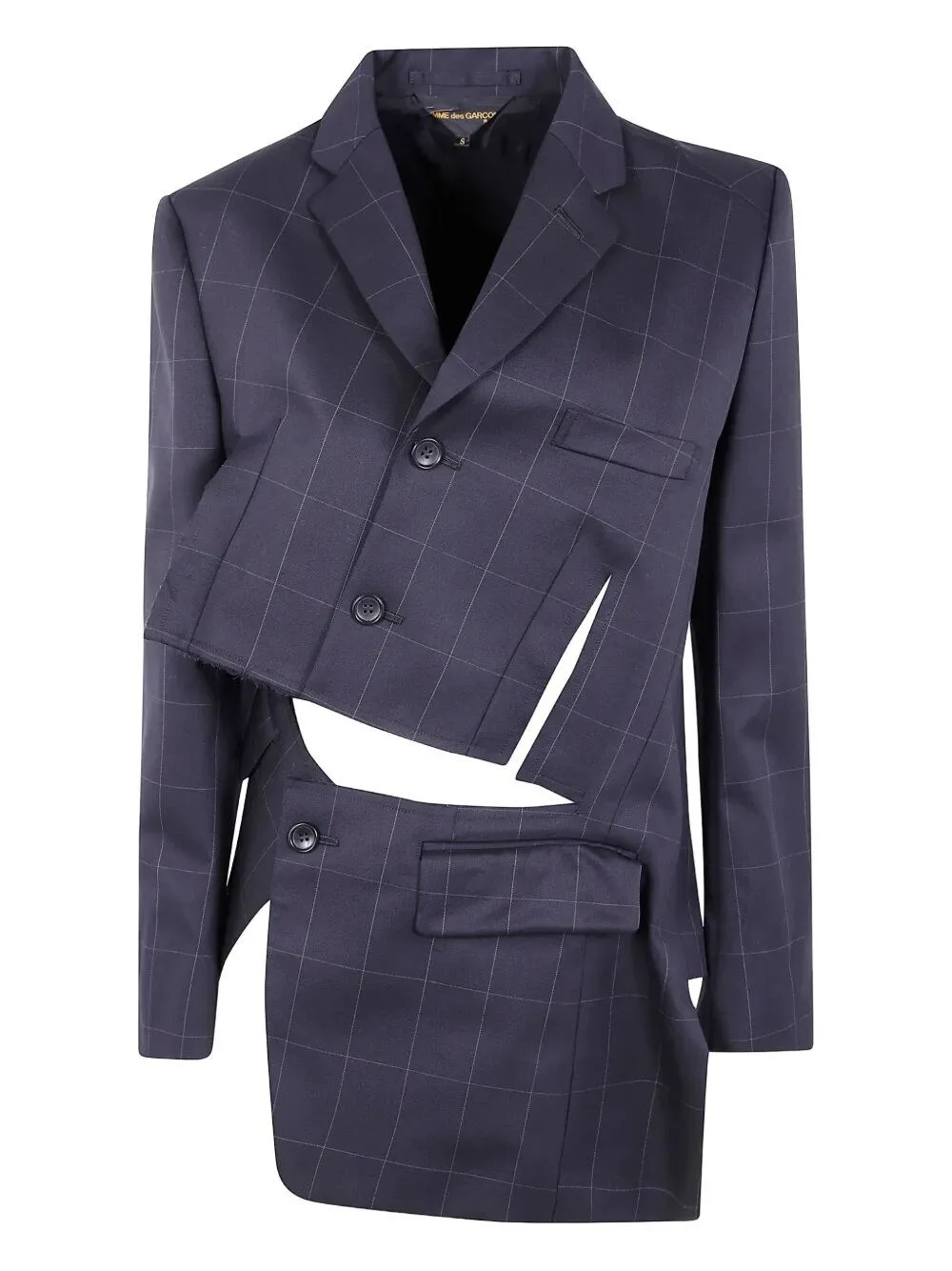 The ASYMETRICAL JACKET by COMME DES GARCONS is a statement piece in the realm of contemporary outerwear. Crafted from luxurious 100% wool, this black jacket embodies sophistication and elegance. Made in Japan, it showcases a unique asymmetrical design that adds an avant-garde touch to any outfit. Perfect for layering, it is ideal for both casual outings and formal events. Embrace your individuality and style it over tailored trousers or a flowing dress. With its focus on quality and sustainability, this limited-edition creation invites you to experience the essence of refined craftsmanship.. MadeIn: Japan JP Product code: GP.J010 0511 BLACK