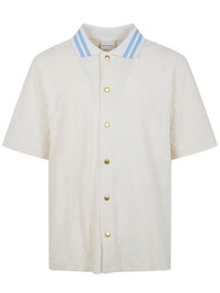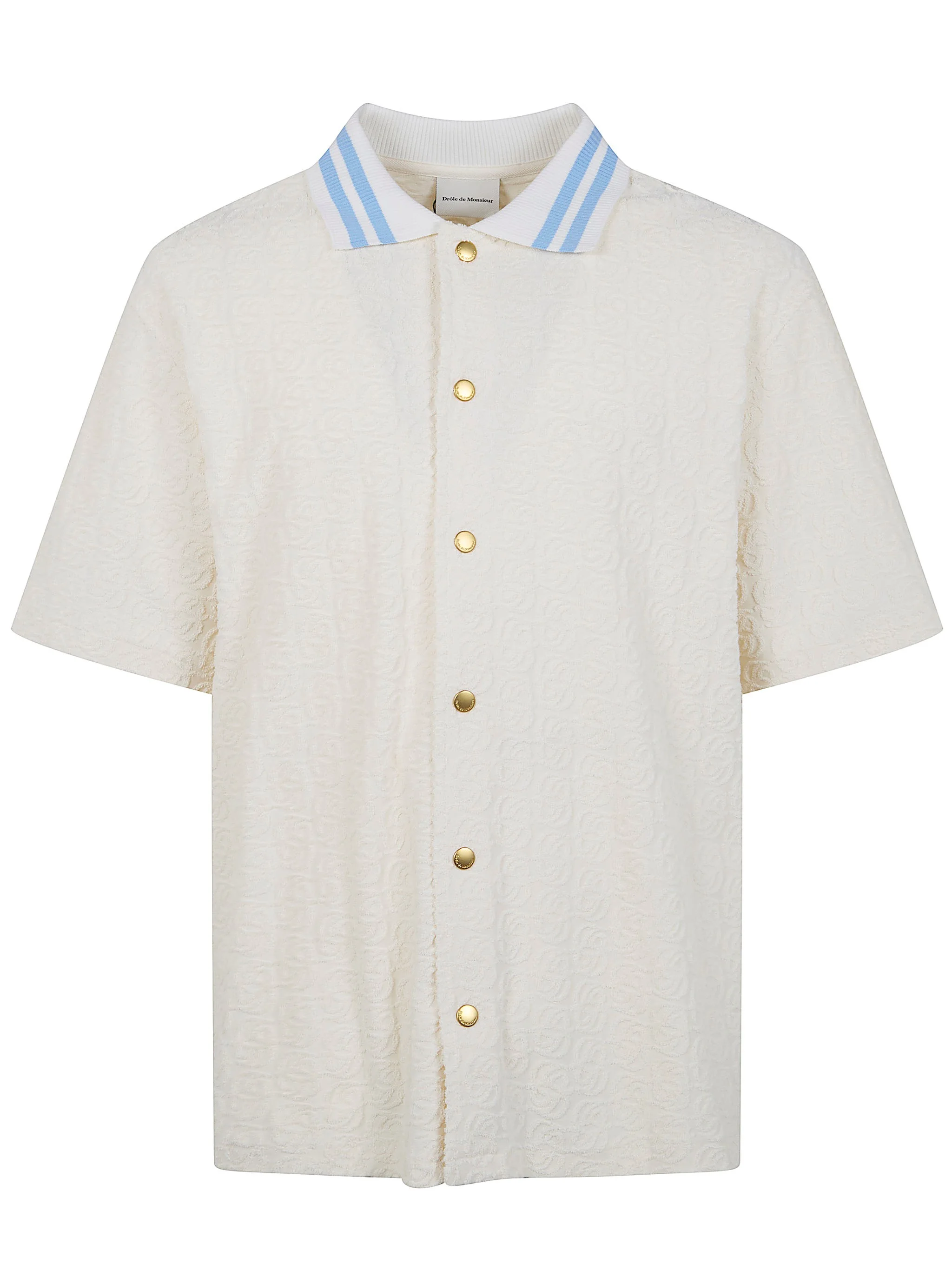 Introducing the 'MONOGRAMME' SHIRT from DROLE DE MONSIEUR, a quintessential piece in contemporary menswear. Crafted from 100% premium cotton, this white shirt with elegant blue stripes embodies sophistication. Made in Portugal, it offers a perfect fit for any occasion. Ideal for both casual outings and formal settings, its breathable fabric ensures all-day comfort. The unique design features a refined monogram detail that elevates your style. Embrace luxury and versatility with this must-have shirt, perfect for layering or standing out on its own. A true statement of artisanal craftsmanship.. MadeIn: Portugal PT Product code: J.SH221.CO201 OFF WHITE