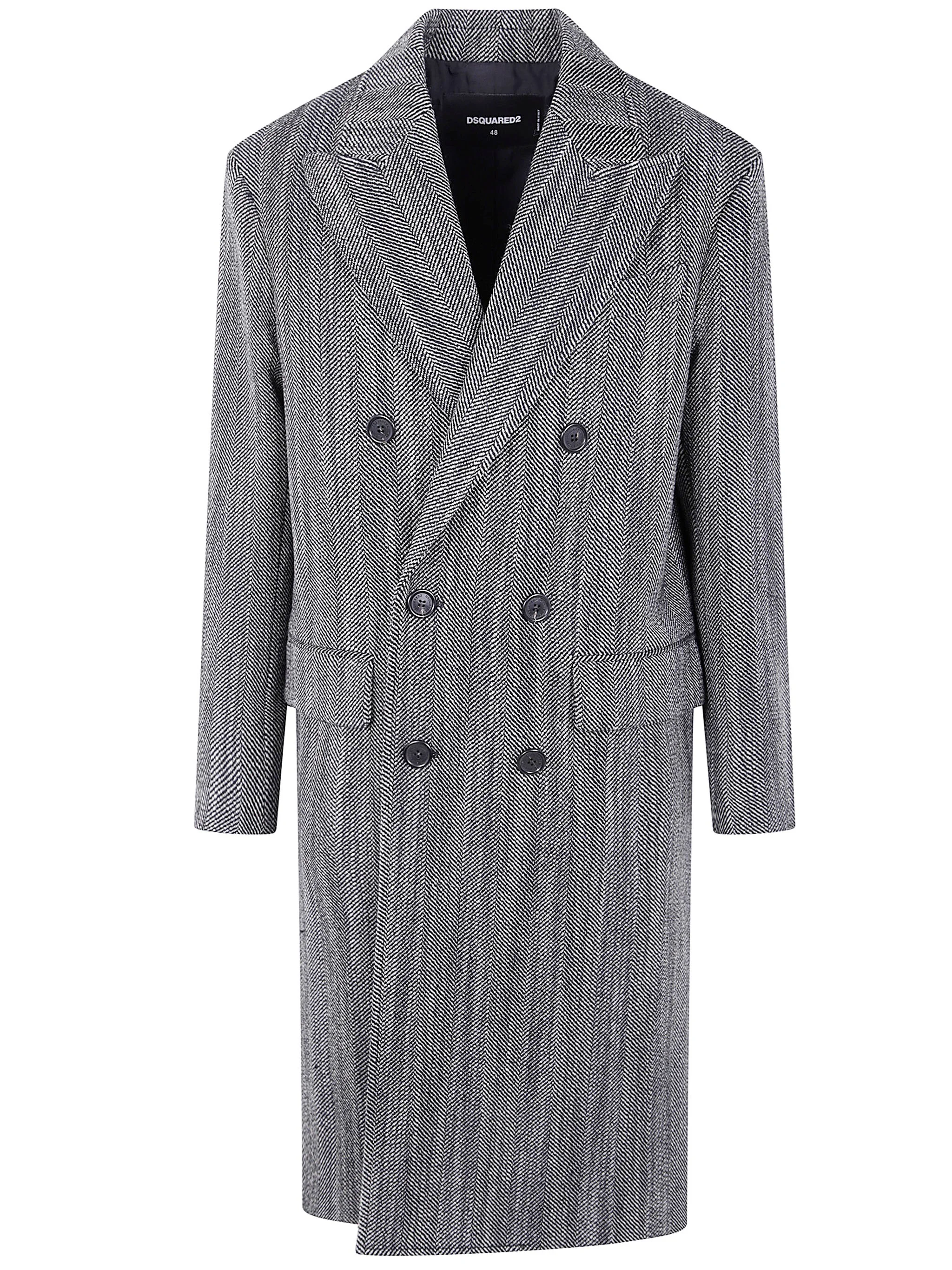 Introducing the 'HERRINGBONE DOUBLE BREAST COAT' by DSQUARED2, a timeless piece in the coat category that embodies sophistication and elegance. Crafted from luxurious 96% virgin wool with 4% polyamide nylon, this coat shines in a classic white hue, promising both warmth and style. Made in Italy, it reflects unparalleled craftsmanship and attention to detail. Ideal for formal events or chic outings, this coat is perfect for layering over tailored suits or dresses, elevating your ensemble with its unique double-breasted design and herringbone pattern. Experience the essence of refined luxury with this exclusive garment, a statement of modern sophistication. Product code: S71AA0472.D35328 001F WHITE BLACK