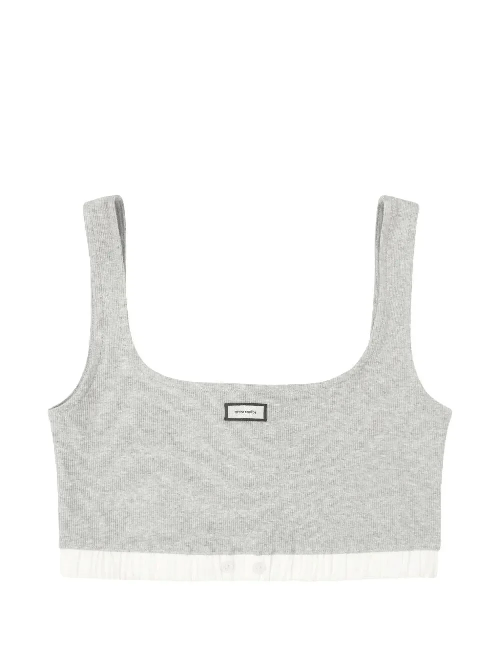 Introducing the 'LOUNGE' BRA, a sophisticated piece from ENTIRE STUDIOS, designed for those who value comfort without sacrificing style. Crafted from a luxurious blend of 93% cotton and 7% elastane, this bra boasts a soft gray hue that complements any wardrobe. Made in China, it embodies a modern aesthetic while ensuring breathability. Ideal for lounging at home or layering under your favorite outfits, it adapts seamlessly to various occasions. With its unique design and attention to detail, this bra offers both support and elegance, making it a must-have for the discerning individual.. MadeIn: China CN Product code: ESSS26BS01876 6238 PEBBLE