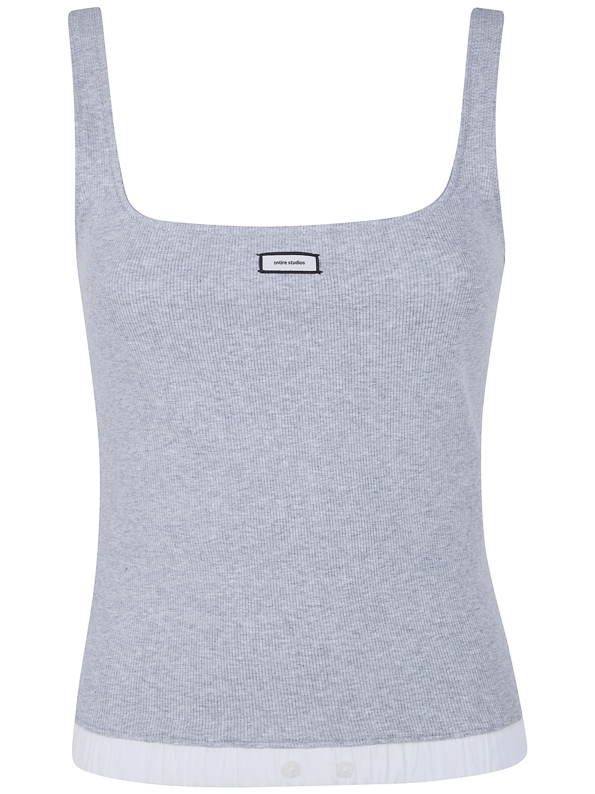 Introducing the "LOUNGE" TANK, a stylish top by ENTIRE STUDIOS. Crafted from a luxurious blend of 93% cotton and 7% elastane, this tank top in a soothing gray color offers a comfortable fit while exuding elegance. Made in China, it is perfect for layering or standalone wear. Ideal for casual outings or cozy evenings at home, this versatile piece complements any wardrobe. With its refined design and unique white trim details, the "LOUNGE" TANK embodies sophistication and modernity, making it a must-have for the discerning fashionista who values quality and style.. MadeIn: China CN Product code: ESSS26TA01876 6238 PEBBLE
