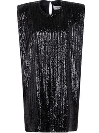 This black sequined dress features shoulder pads for a structured silhouette, combining elegance with a modern edge. the full paillettes create a striking shimmer, perfect for evening events. Product code: GWP02172.P001828.90100 90100 BLACK