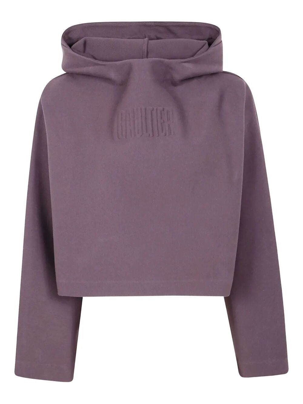The Bonded Cotton Cropped Bat Sleeves Hoodie With "Gaultier" Embossing by Jean Paul Gaultier is a staple in contemporary fashion. Crafted from high-quality bonded cotton, this hoodie features a rich brown hue and showcases a unique embossed logo detail. Made in Bulgaria, it offers comfort and style, perfect for both casual outings and relaxed evenings. Pair it with high-waisted jeans or tailored trousers for a chic look. Embrace the exclusivity of this limited edition piece, designed to elevate your wardrobe sustainably, reflecting a commitment to quality and innovation. Product code: 25.03.W.TO288.J005 71 CHOCOLAT
