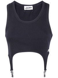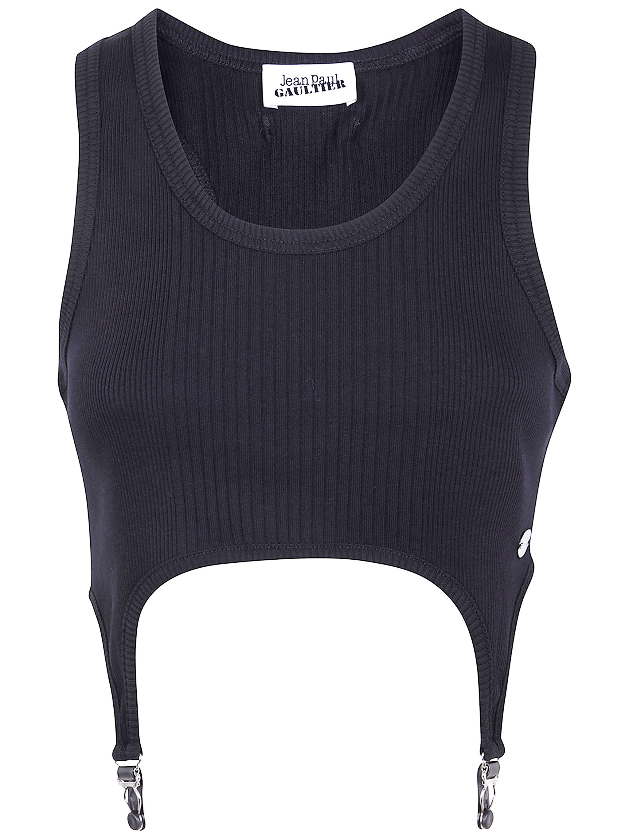 Introducing the 'COTTON RIBBED BRA WITH LINGERIE GARTER' from the prestigious brand JEAN PAUL GAULTIER, a luxurious addition to your underwear collection. Crafted from high-quality cotton, this bra boasts a rich black color, perfect for versatile styling. Made in Bulgaria, it offers a comfortable fit for various sizes. The exquisite ribbed design and lingerie garter details elevate its elegance, making it a staple for both casual and intimate occasions. Ideal for layering under sheer tops or pairing with your favorite loungewear, this piece embodies sophistication while promoting a sense of exclusivity. Embrace the artistry of fashion with this unique, sustainable garment, designed for the modern woman. Product code: 25.04.W.BR013.J014 00 BLACK