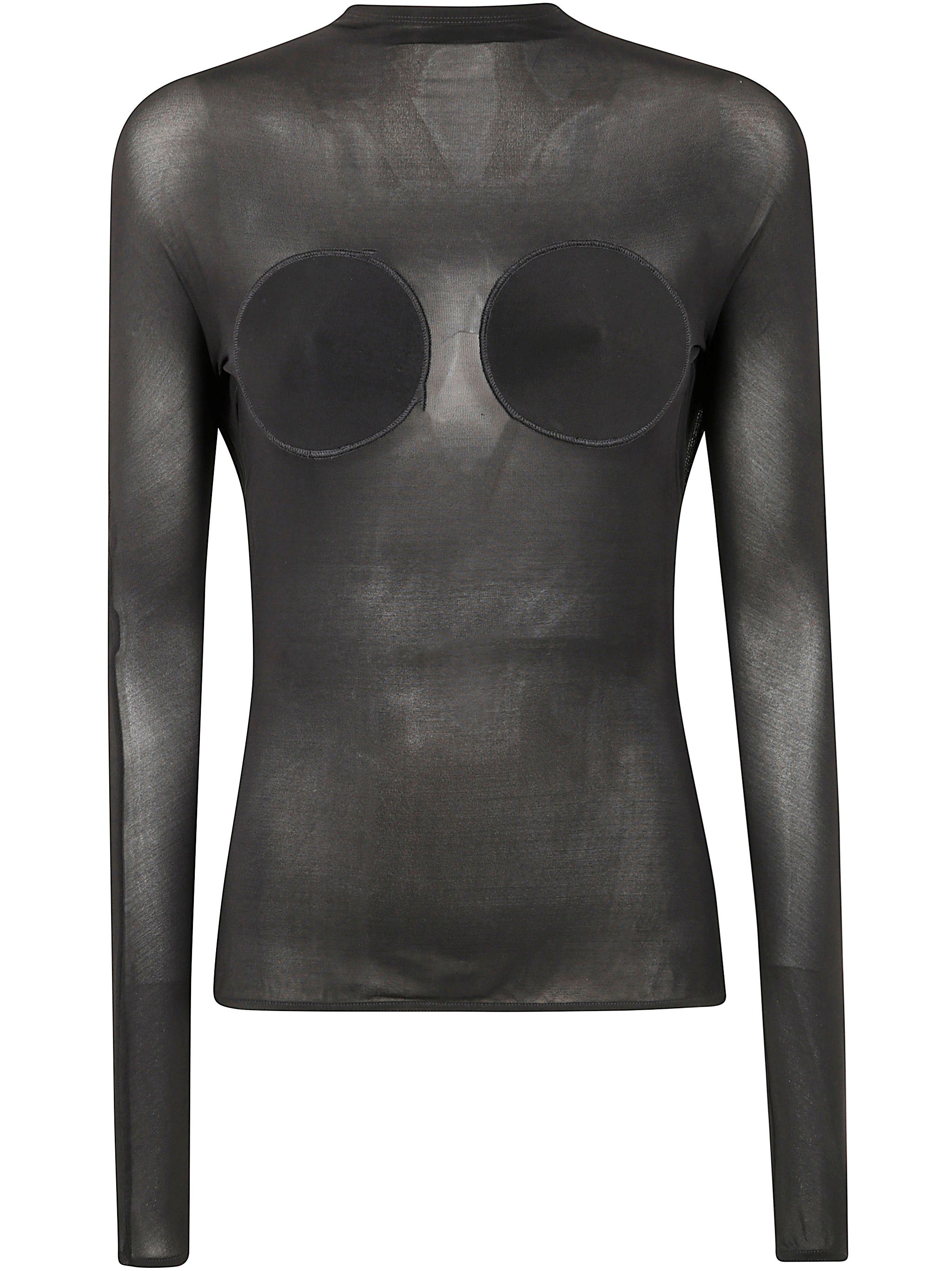 Introducing the Light Jersey Backless Top With Covered Cup Detail, a stunning piece from Jean Paul Gaultier that redefines elegance in the clothing category. Crafted from a luxurious jersey fabric, this top features a striking black color that enhances its allure. Made in Portugal, it exudes quality and attention to detail. Ideal for evening outings or special occasions, its unique backless design and covered cup detail provide both comfort and sophistication. Pair it with tailored trousers or a sleek skirt for a chic ensemble that showcases your refined taste. Product code: 25.34.F.TO279.J082 00 BLACK