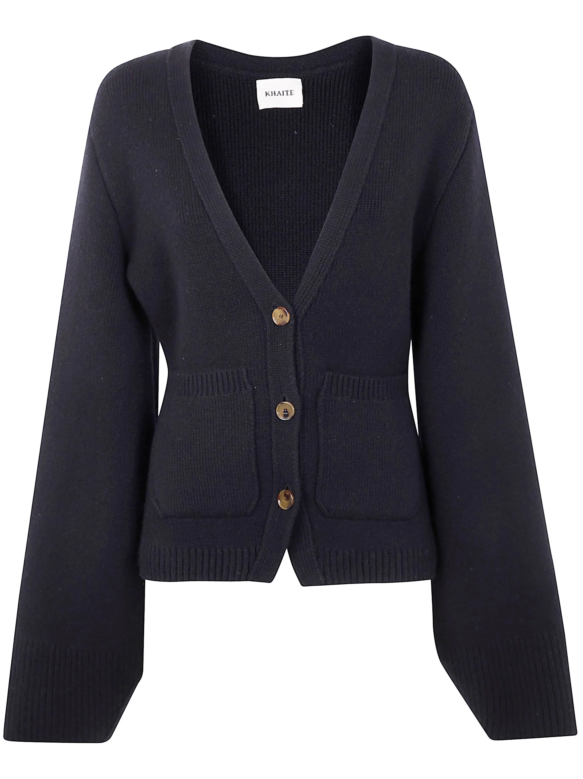 Introducing the Scarlet Cardigan, a luxurious sweater by Khaite. Crafted from premium materials, this stunning piece features a rich black hue that effortlessly complements any wardrobe. Made in Italy, it offers a unique blend of style and comfort. The cardigan boasts a sophisticated design with distinct detailing, making it perfect for both casual outings and elegant events. Pair it with tailored trousers or a chic dress for a versatile look. Embrace the exclusivity of this limited-edition piece and elevate your fashion statement with this must-have addition. Product code: 8267600 097 200 BLACK