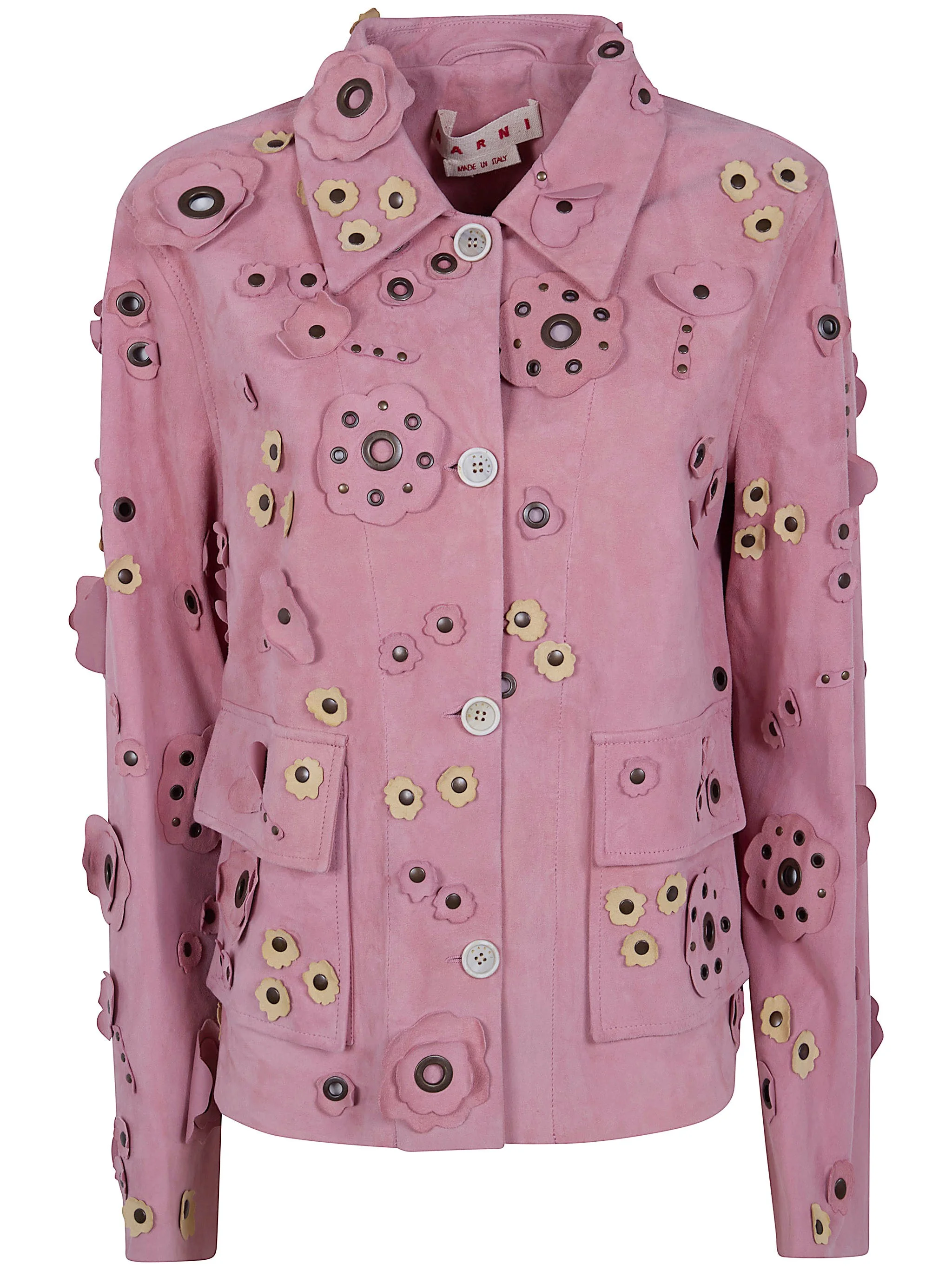 PINK SUEDE JACKET WITH FLOWER APPLIQUÉS