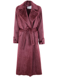 Introducing the exquisite "ALBATA1234" Oversized Coat by MAX MARA, a stunning addition to your outerwear collection. Crafted from a luxurious blend of 75% Alpaca and 25% Virgin Wool, this coat boasts a rich cherry red hue that radiates warmth and elegance. Made in Italy, it embodies fine craftsmanship and attention to detail. With its oversized silhouette, it offers both comfort and style, making it perfect for sophisticated evenings or casual outings. Pair it with tailored trousers or a chic dress for a versatile look that highlights your unique sense of fashion. Elevate your wardrobe with this timeless piece. Product code: 2521016373600 003 CHERRY