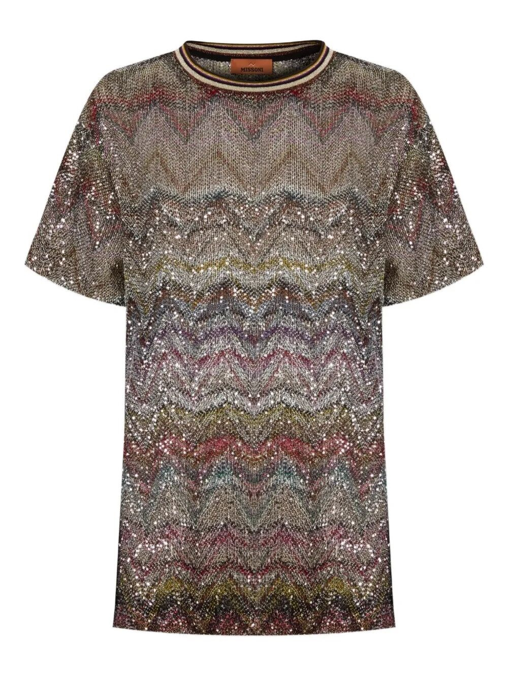 Short Sleeve T-Shirt with Zigzag and Sequins