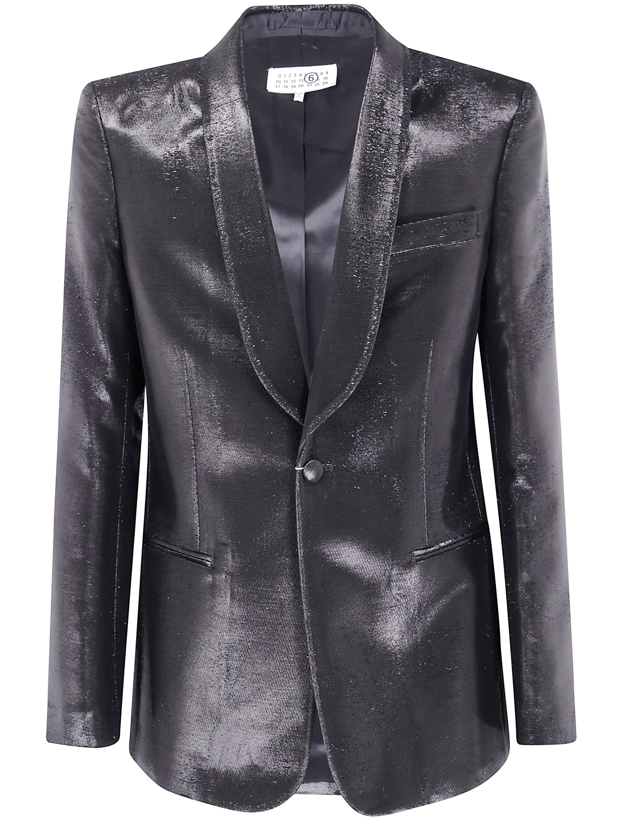 Introducing the 'JACKET' by MM6, a striking addition to your wardrobe. Crafted from an exquisite blend of 52% Acetate, 32% Cotton, and 16% Polyester, this luxurious black piece embodies sophistication. Made in Italy, it showcases unparalleled craftsmanship and attention to detail. The unique button detailing adds a contemporary twist, making it perfect for both casual outings and formal events. Pair it with tailored trousers for an elegant dinner or with jeans for a chic weekend look. Elevate your style with this versatile jacket, a true testament to modern luxury. Product code: SH2BN0015.M35610 900 BLACK