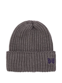 ribbed-knit butterfly-embroidery beanie