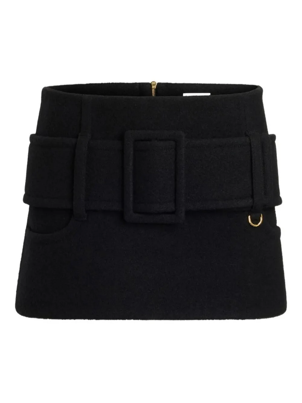 The BELTED MINI SKIRT from PATOU redefines contemporary elegance in women's fashion. Crafted from high-quality materials, this black skirt features a striking belt that accentuates the waist, offering a chic silhouette. Made in Bulgaria, it combines sophistication with practicality, making it perfect for both casual outings and formal events. Its unique design showcases tailored lines and exquisite detailing, ensuring you stand out in any crowd. Ideal for evening dinners or daytime gatherings, this versatile piece allows for effortless styling. Embrace luxury and individuality with this exclusive addition to your wardrobe. Product code: SK0990232 999B BLACK