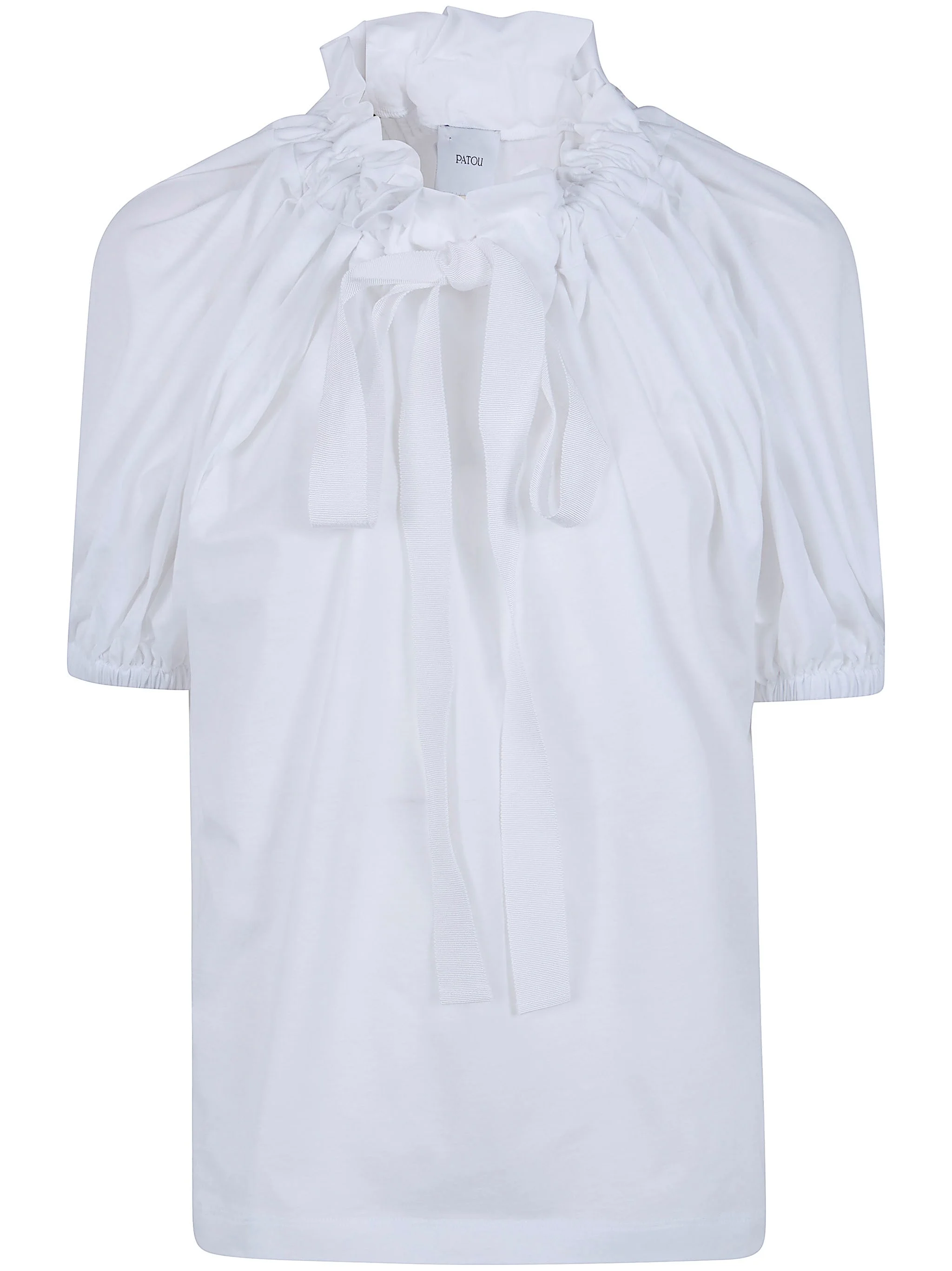 Introducing the 'VOLUME JERSEY TOP' by PATOU, a stunning addition to your wardrobe that embodies elegance and sophistication. Crafted from 100% cotton, this white top offers unmatched comfort and breathability, making it perfect for the warmer months. Made in Portugal, it showcases exquisite craftsmanship. With its unique design featuring a chic bow detail, this top is ideal for both casual outings and more formal occasions. Pair it with tailored trousers for a polished look or with denim for a relaxed vibe. Experience luxury and versatility in one piece, designed to elevate your style effortlessly.. MadeIn: Portugal PT Product code: JE1399999 098 001W WHITE