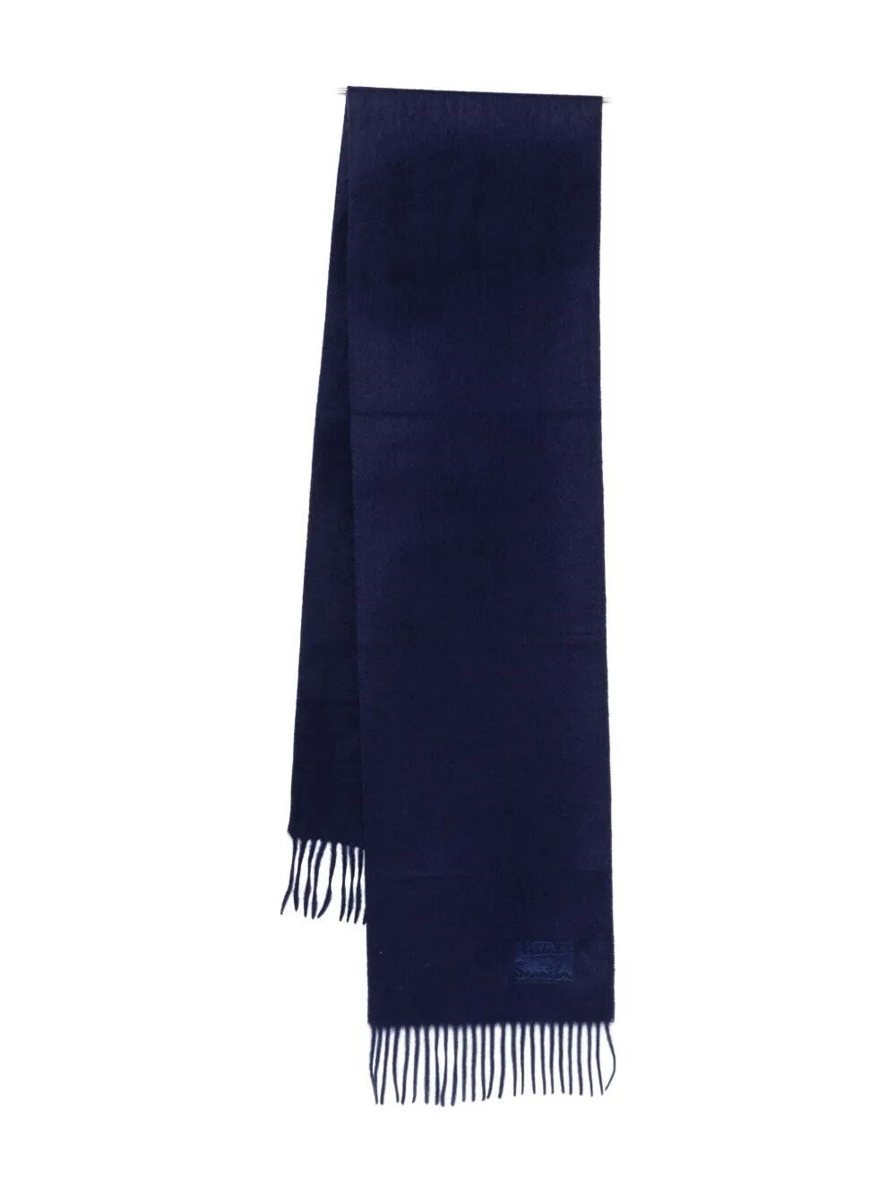 Navy Tonal Embroidered Logo Cashmere Scarf