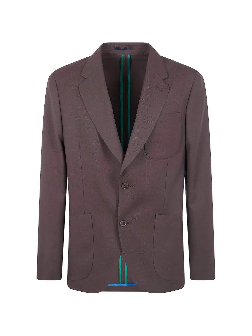 Introducing the 'MENS 2 BOTTONS JACKET' by PAUL SMITH, a refined garment in the jacket category. Crafted from 100% premium wool, this sophisticated brown jacket showcases impeccable craftsmanship, made in Portugal. Tailored for a modern silhouette, it effortlessly combines elegance with contemporary flair. Ideal for both formal occasions and casual outings, this jacket elevates any ensemble with its unique design and meticulous details. Embrace its luxurious feel and versatility as you make a statement at business meetings or evening events. Celebrate sustainability with this timeless piece that embodies quality and style.. MadeIn: Portugal PT Product code: M1R.2358.V00001 67 BROWN