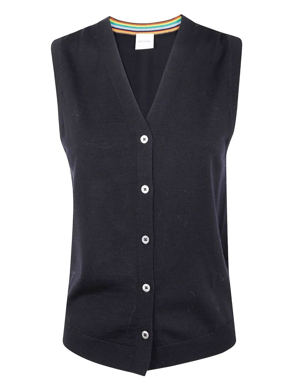 Introducing the 'WOMENS KNITTED WAISTCOAT' from PAUL SMITH, a sophisticated addition to your Fall Winter wardrobe. Crafted with the utmost attention to detail, this elegant waistcoat features premium materials that elevate its luxurious feel. The classic black color ensures versatility, making it a perfect layering piece for any occasion. Made in China, it embodies modern craftsmanship. Ideal for both casual outings and formal events, pair it with tailored trousers or a chic dress for a polished look. Embrace the essence of exclusivity with this timeless piece. Product code: W1R640NT11186 79 BLACK