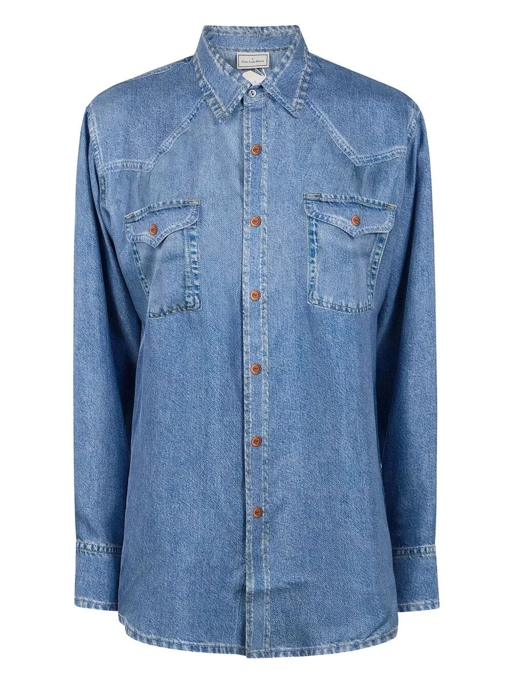 Introducing the "ALOE" LONGSLEEVES SHIRT by PIERRE LOUIS MASCIA, a stunning addition to your wardrobe. This exquisite shirt, crafted from 100% silk, envelops you in luxury with its rich blue hue. Made in Italy, it embodies the finest craftsmanship. Perfect for both casual and formal occasions, the shirt features unique brown button details that elevate its design. Pair it with tailored trousers for a sophisticated look or dress it down with jeans for a chic weekend ensemble. Embrace the elegance of silk and enjoy the versatility that this piece brings to your style.. MadeIn: Italy IT Product code: ALOE.S.12657 098 102 DENIM
