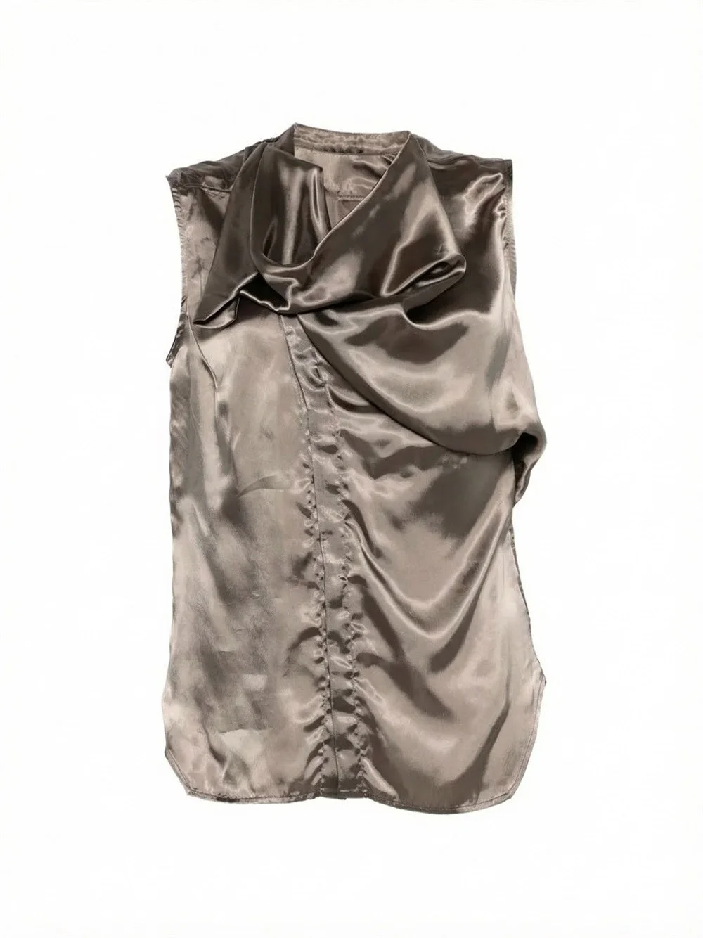 Island Draped Sleeveless Satin Shirt