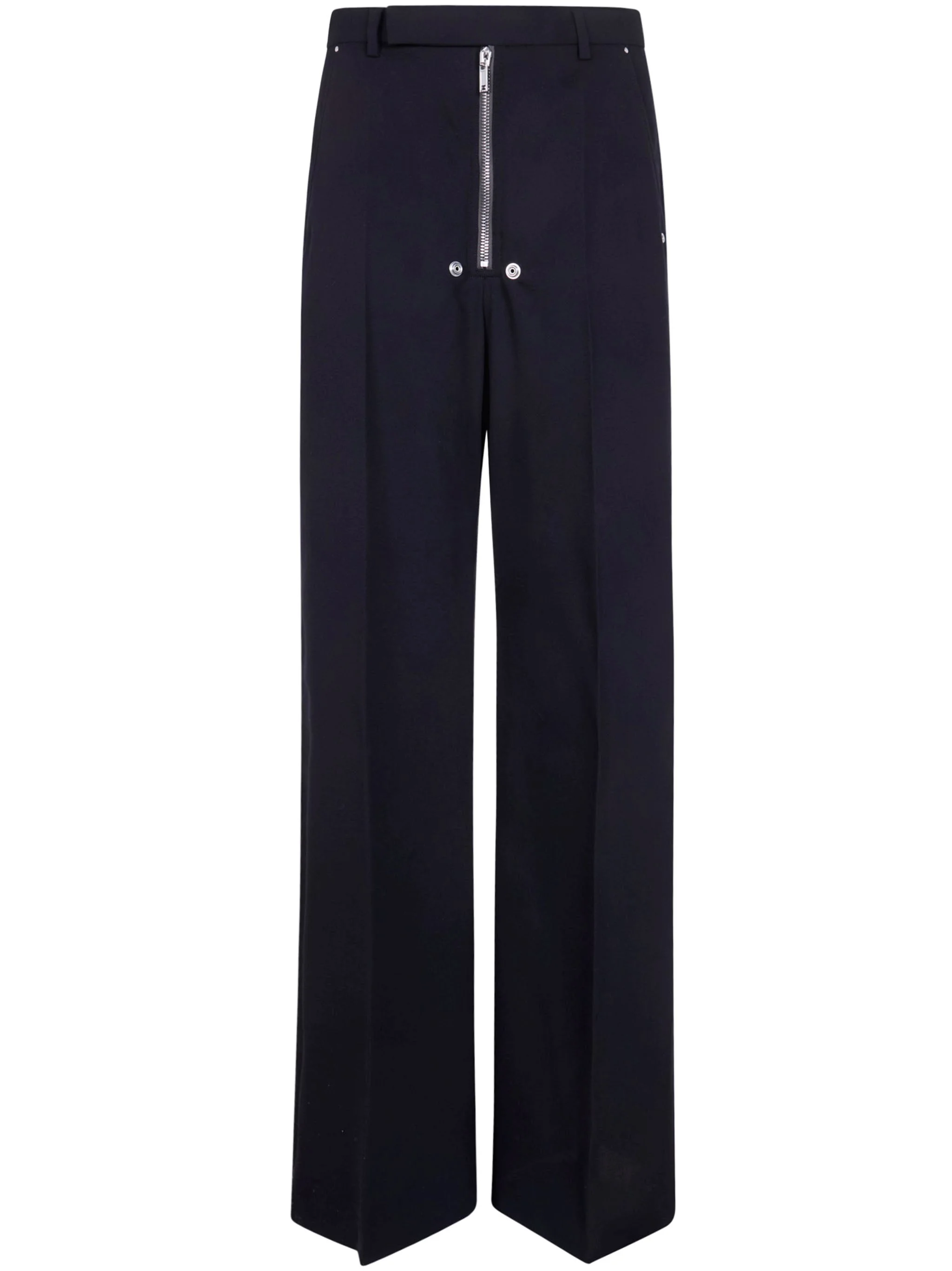 Introducing the "TAILORED WIDE BELAS" Trousers by RICK OWENS, a luxurious addition to your wardrobe. Crafted from 100% high-quality wool, these elegant black trousers epitomize sophistication and versatility. Made in Italy, they feature a tailored design that effortlessly flatters the silhouette. With a wide leg cut and unique zipper details, they provide both comfort and style. Perfect for formal occasions or upscale gatherings, these trousers can be paired with a fitted shirt or an oversized blazer for a contemporary look. Embrace exclusivity and craftsmanship with this essential piece, designed for the modern individual.. MadeIn: Italy IT Product code: RP01F6355.WT 09 BLACK