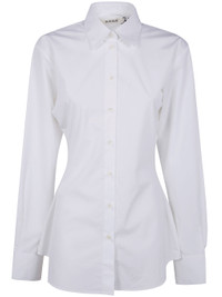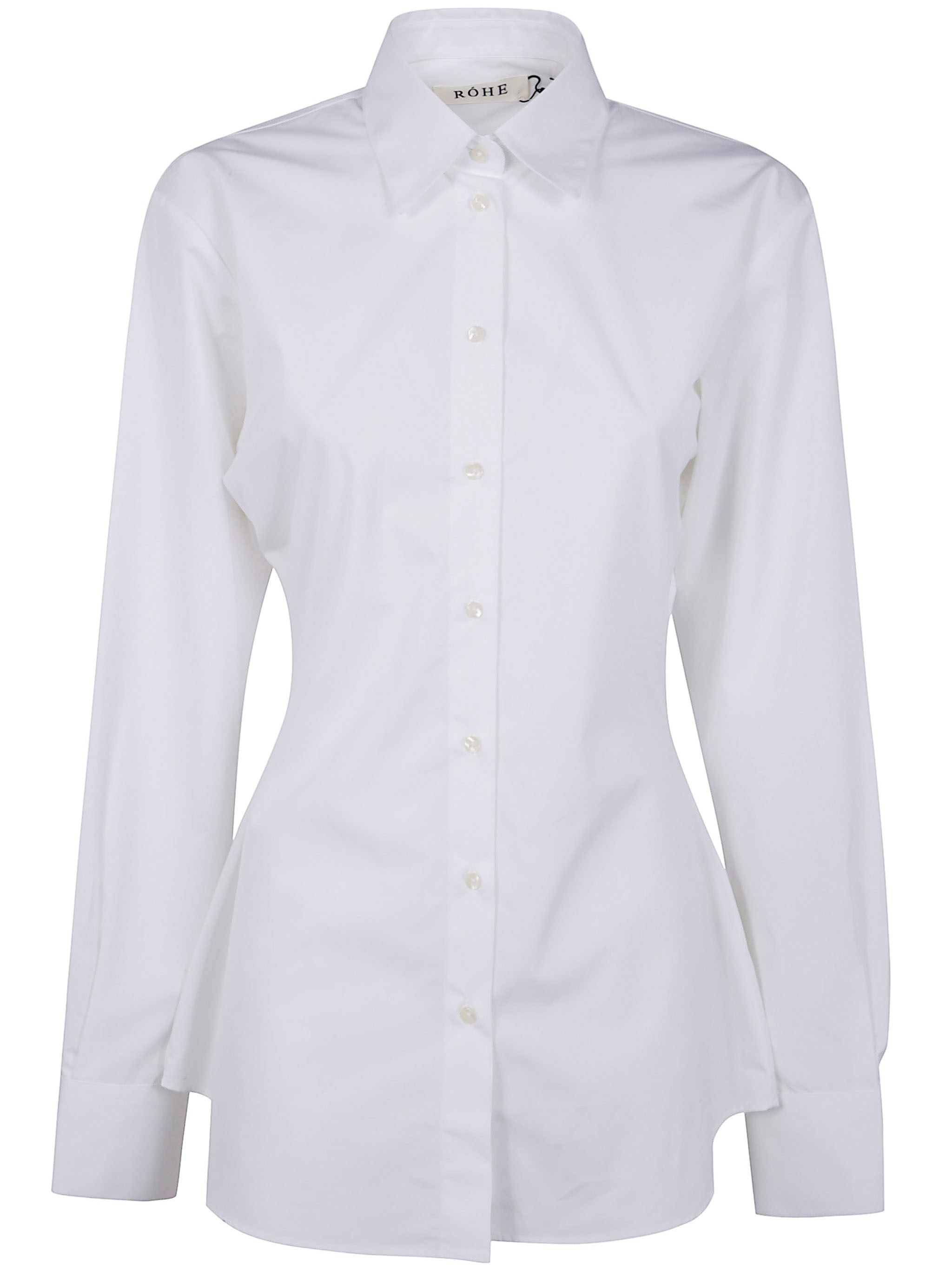 Introducing the 'POPULIN SHAPED SHIRT' from ROHE, a sophisticated addition to your wardrobe. Crafted from premium poplin fabric, this white shirt boasts a tailored fit that flatters all silhouettes. Made in Portugal, it offers exceptional quality and attention to detail. Ideal for both casual and formal occasions, pair it with tailored trousers or a sleek skirt for a polished look. With its crisp design and unique button detailing, this shirt embodies modern elegance. Elevate your style with a piece that resonates with luxury and timeless appeal. Product code: 411.19.048 100.303 OPTIC WHITE