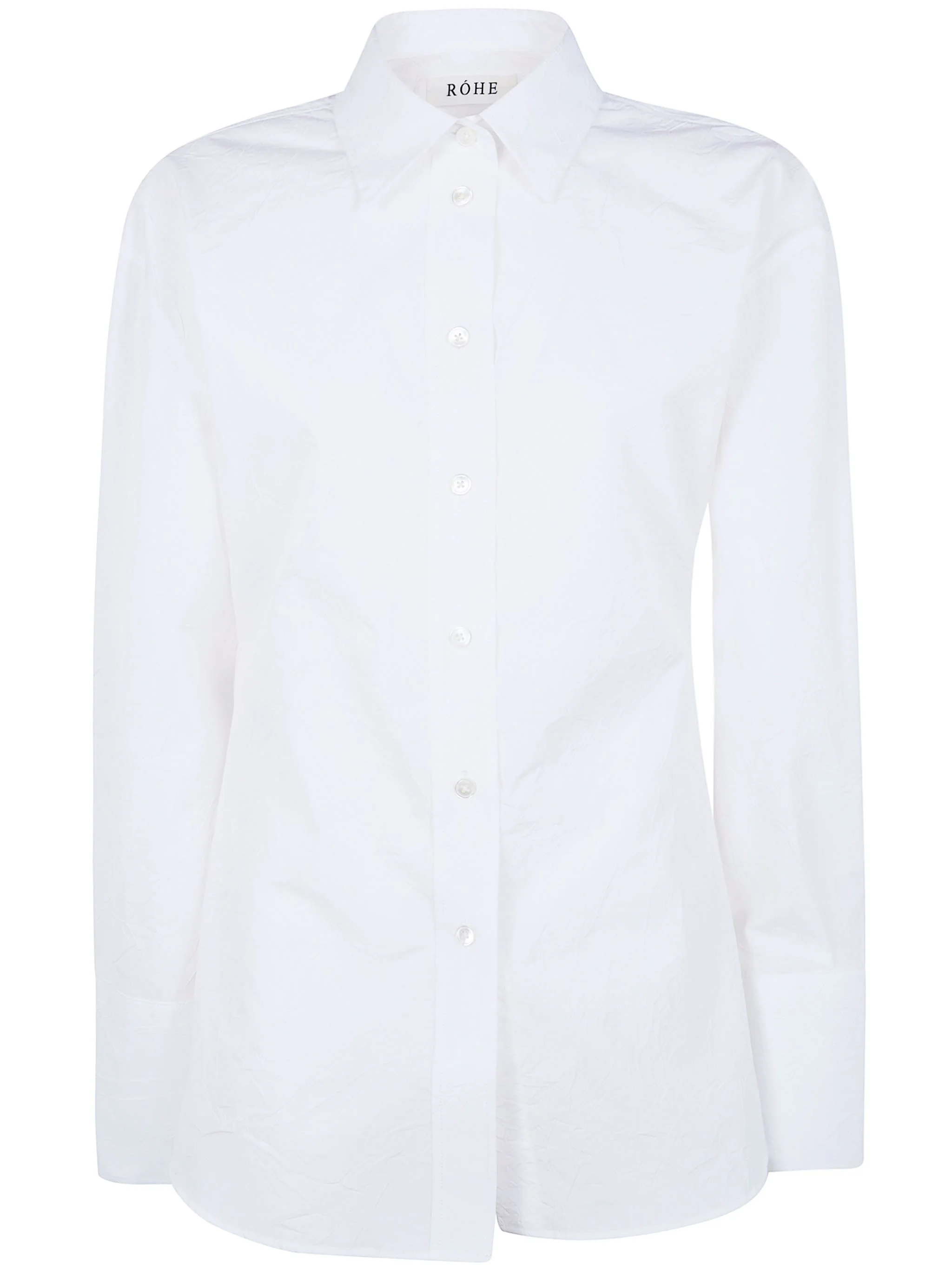 Introducing the 'SHAPED CRUSHED POPLIN SHIRT' by ROHE, a stunning addition to your wardrobe. Crafted from a luxurious blend of 75% cotton and 25% polyester, this shirt offers unparalleled comfort and breathability. In a classic white hue, it is perfect for any occasion. Made in Portugal, it showcases exquisite craftsmanship and attention to detail. The unique crushed texture adds a contemporary twist to a timeless silhouette. Ideal for both casual outings and refined gatherings, pair it with tailored trousers or denim for a polished look. Experience the elegance of sustainable fashion.. MadeIn: Portugal PT Product code: 418.19.200 100.303 OPTIC WHITE