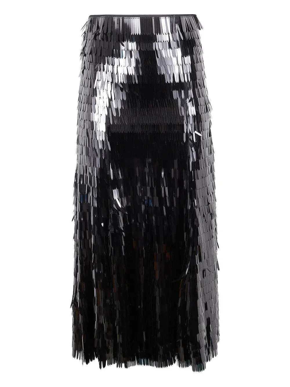 Introducing the exquisite 'SEQUIN MIDI SKIRT' by SELF-PORTRAIT, a stunning addition to your wardrobe. Crafted from 100% polyester, this black skirt is designed to catch the light with its shimmering sequins, making it a statement piece for any occasion. Made in China, it offers a perfect blend of elegance and comfort. Ideal for evening events or sophisticated brunches, pair it with a sleek top and heels for a timeless look. Embrace luxury and confidence as you step out in this unique design, showcasing attention to detail and quality craftsmanship. Product code: RS26.165MSK BLACK