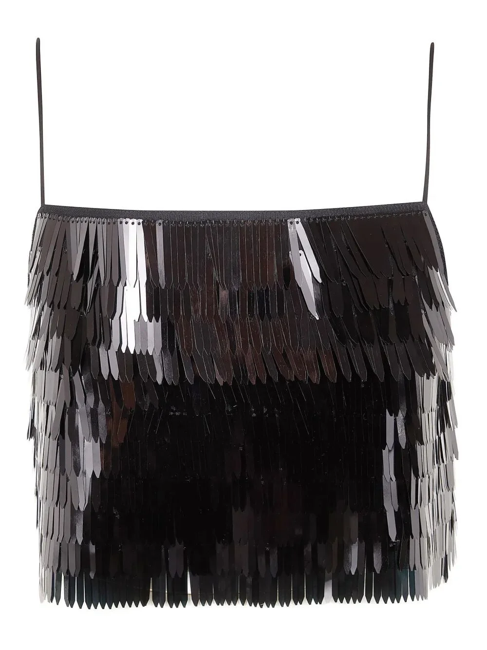 The 'SEQUIN TOP' by SELF-PORTRAIT is a stunning addition to your Spring/Summer 2026 wardrobe. Crafted from 100% polyester, this exquisite black top showcases a captivating sequin design that shimmers with every movement. Made in China, it combines elegance with a modern twist. Perfect for special occasions or a night out, this top pairs beautifully with tailored trousers or a sleek skirt. Infused with a sense of luxury and exclusivity, the 'SEQUIN TOP' invites you to embrace your unique style with confidence and sophistication. Product code: RS26.165T BLACK