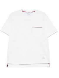 Introducing the 'OVERSIZED SHORT SLEEVE TEE WITH EMBROIDERED RWB POCKET TRIM IN HEAVY JERSEY' by THOM BROWNE, a standout piece in the realm of clothing. Crafted from premium heavy jersey, this exquisite white tee embodies luxury and comfort. Made in Japan, it boasts a relaxed fit perfect for layering or standalone wear. Ideal for casual outings or upscale events, this t-shirt seamlessly integrates into any wardrobe. With its unique embroidered RWB pocket trim, it offers a refined aesthetic, making it a timeless addition for the discerning individual who values craftsmanship and style. Product code: MJS295E.J0235 100 WHITE