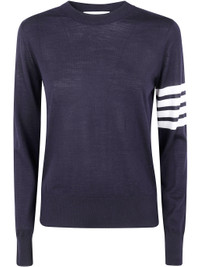 Introducing the 'RELAXED FIT PULLOVER WITH 4 BAR IN FINE MERINO WOOL' by THOM BROWNE, a masterpiece in the clothing category. Crafted from 100% virgin wool, this exquisite pullover showcases a stunning blue hue, perfect for elevating your wardrobe. Made in Italy, it embodies luxury and craftsmanship. Ideal for both casual outings and sophisticated events, this versatile piece can be effortlessly styled with tailored trousers or denim. Its unique design features a relaxed fit and the iconic four-bar detail, making it a statement piece that radiates elegance and confidence. Embrace the exclusivity and timeless appeal of this essential addition to your collection. Product code: FKA280A.Y1014 098 415 NAVY
