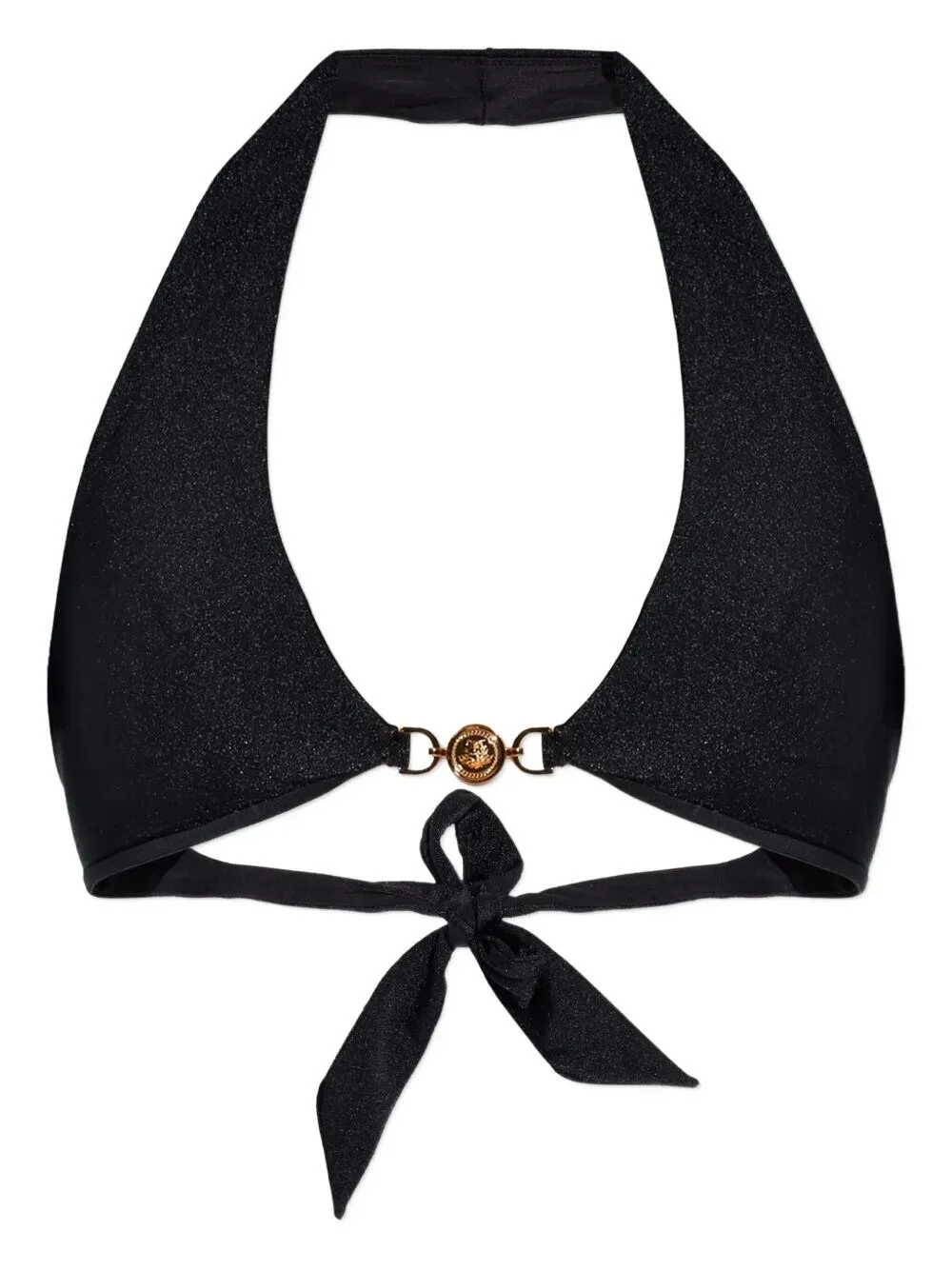 Introducing the 'SWIM TOP LYCRA' by VERSACE, a luxurious addition to your swimwear collection. Crafted from a premium blend of 80% POLYAMIDE and 20% ELASTANE, this black swim top embodies elegance and comfort. Made in Italy, it showcases exquisite craftsmanship. Its sleek design features unique detailing that enhances both style and functionality, making it perfect for beach outings or poolside lounging. Embrace versatility with this statement piece that complements various body types. Elevate your summer wardrobe with this exclusive item, reflecting the essence of high fashion and sophistication.. MadeIn: Italy IT Product code: 1022531.1A17153 1B000 BLACK