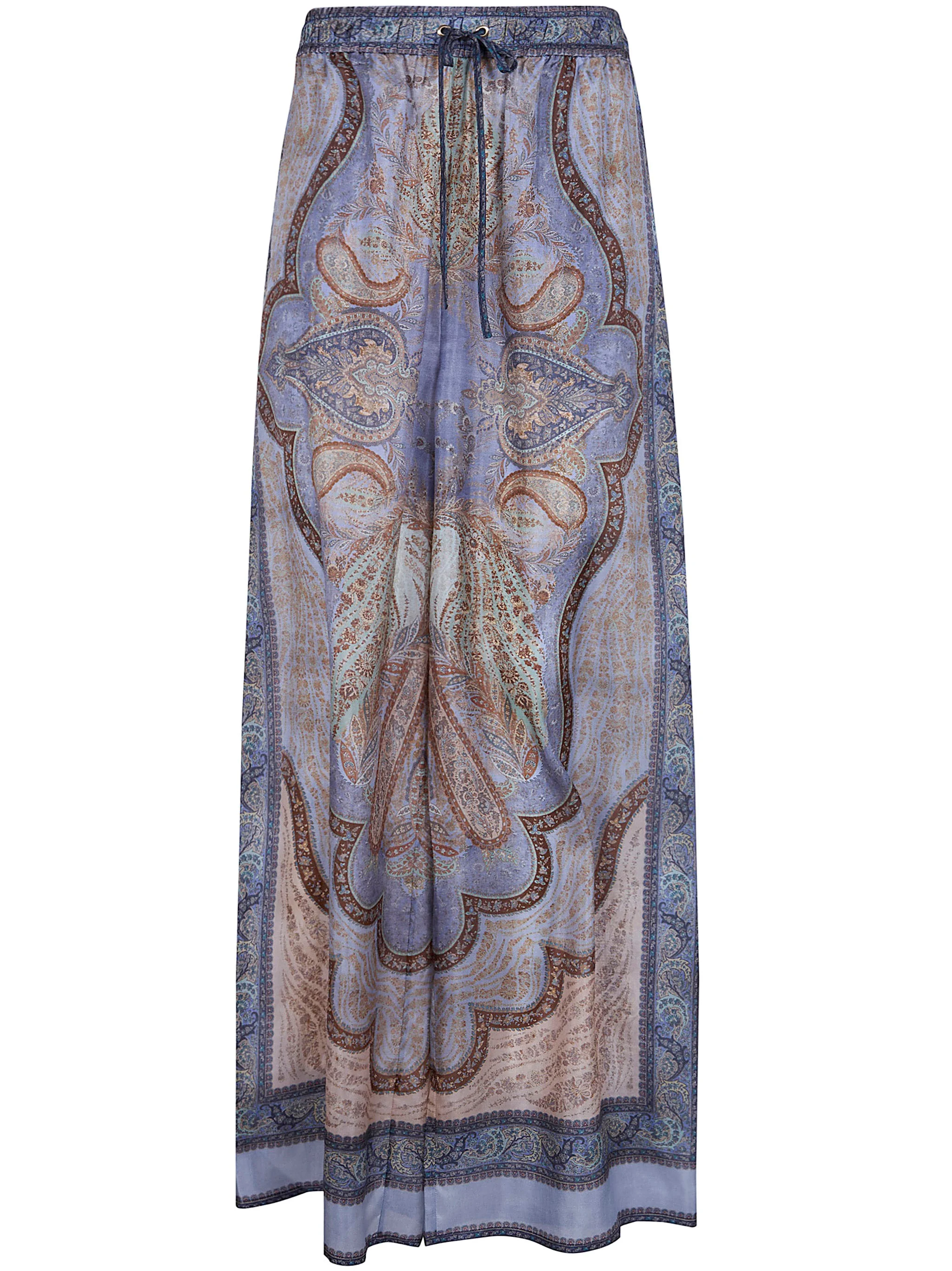 Introducing the "WANDERLUST" RELAXED PANT by ZIMMERMANN, a stunning addition to your spring-summer wardrobe. Crafted from luxurious 100% silk, these exquisite blue pants embody elegance and comfort. Made in China, they promise a perfect fit for lasting wear. The unique tapestry blue multi pattern adds a touch of sophistication, making them ideal for both casual outings and refined events. Pair them with a simple top for a chic day look or elevate your evening ensemble with statement accessories. Embrace exclusivity and artistry with each wear, knowing you're embracing luxury at its finest. Product code: 5580PRS262 TPBL TAPESTRY BLUE MULTI