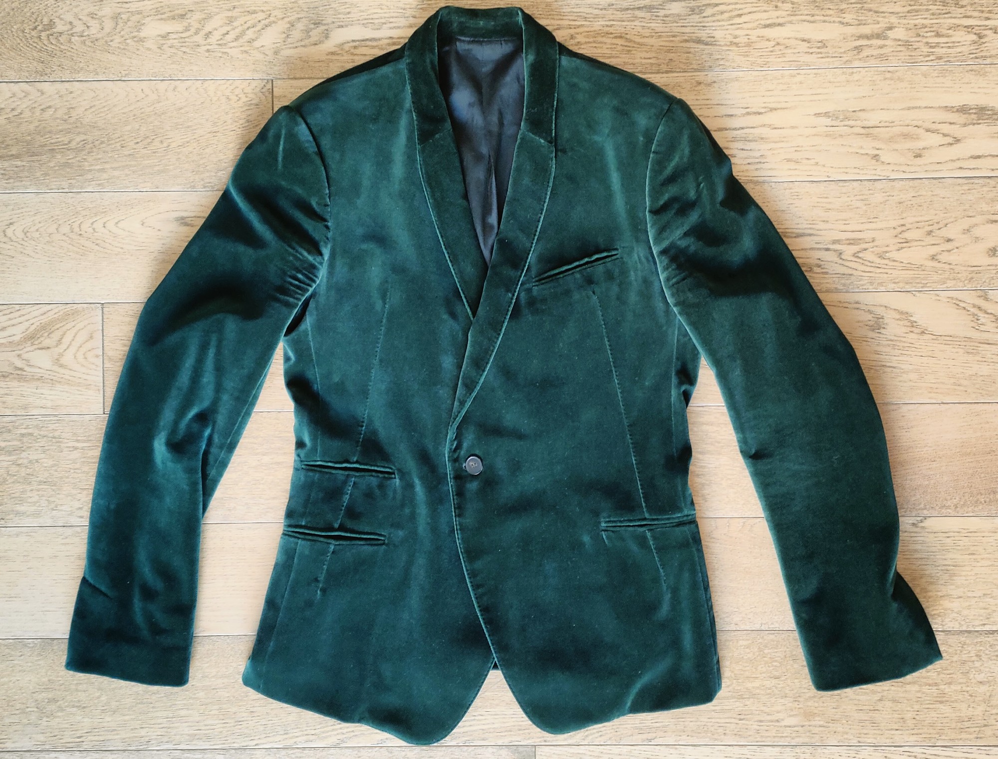 Haider Ackermann green velvet blazer I would actually love to TRADE my 48 for a 50 or 52, so if you have this and it fits big, get in touch. Superb velvet blazer by Haider Ackermann, from Fall-Winter 2018. Runway piece. Luxurious emerald green velvet, one button closure, side pockets, slit cuffs. Cotton and silk. Tagged size 48, fits true for a fitted look. shoulders 45cm chest 51cm sleeve 66cm length 70cm(back) / 75cm(front) Get in touch for specific shipping options if not listed.