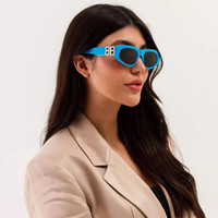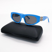 NEW BALENCIAGA BB0095S 011 OVAL BLUE GREY WOMEN SUNGLASSES