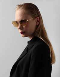 NEW BALENCIAGA BB0194S 002 GOLD GEOMETRIC WOMEN SUNGLASSES