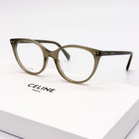 100% NEW AUTHENTIC EYEWEAR WITH FULL PACKAGE Model: CL50068I 093 Brand: CELINE Condition: New with full package Frame color: Khaki Lens color: Clear Frame material: Acetate Lens socket: 52 mm Bridge width: 20 mm Temple length: 145 mm Made in Italy Item included: authentic eyewear, certificate of authentic, cleaning cloth, case, box.