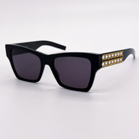 100% NEW AUTHENTIC EYEWEAR WITH FULL PACKAGE Model: GV40076I 01A Brand: GIVENCHY Condition: New with full package Frame color: Shiny Black and Studs Lens color: Grey Frame material: Acetate Lens socket: 54 mm Bridge width: 18 mm Temple length: 145 mm Made in Italy Item included: authentic eyewear, certificate of authentic, cleaning cloth, case, box.