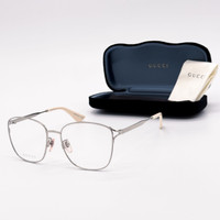 100% NEW AUTHENTIC EYEWEAR WITH FULL PACKAGE Model: GG0819OA 003 Brand: GUCCI Condition: New with full package Frame color: Silver Lens color: Clear Frame material: Metal Lens socket: 56 mm Bridge width: 17 mm Temple length: 145 mm Made in Italy Item included: authentic eyewear, certificate of authentic, cleaning cloth, bag, case.