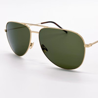 100% NEW AUTHENTIC EYEWEAR WITH FULL PACKAGE Model: CLASSIC 11 028 Brand: SAINT LAURENT Condition: New with full package Frame color: Gold Lens color: Green Frame material: Metal Lens socket: 61 mm Bridge width: 14 mm Temple length: 150 mm Made in Italy Item included: authentic eyewear, paperwork (certificate of authentic), cleaning cloth, case.