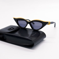 100% NEW AUTHENTIC EYEWEAR WITH FULL PACKAGE Model: VALENTINO V-GOLDCUT-II VLS-114A Brand: VALENTINO Condition: New with full package Frame color: Black/Gold Lens color: Dark Grey Frame material: Acetate Lens socket: 49 mm Bridge width: 18 mm Temple length: 142 mm Made in Japan Item included: authentic eyewear, certificate of authentic, paperwork, cleaning cloth, bag, case with strap, box.